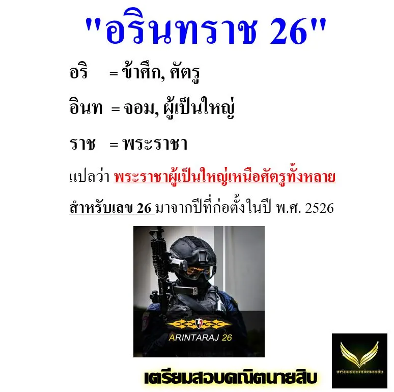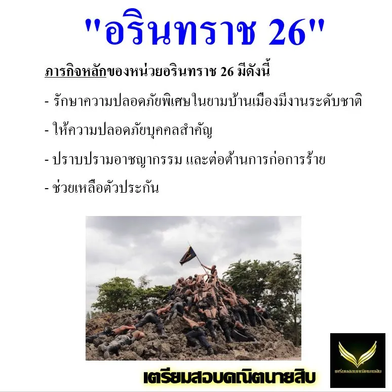 และในบรรดาผู้เสียชีวิต ก็มีเจ้าหน้าที่จากหน่วยอรินทราช 26 จำนวน 2 นายที่เสียชีวิตจากการเข้าเคลียร์พื้นที่ นำมาซึ่งความเศร้าโศกเสียใจของคนไทย และสดุดีในวีรกรรมของเขา ซึ่งล่าสุด เฟซบุ๊กเพจ เตรียมสอบคณิตนายสิบ ได้มาแนะนำให้รู้จักกับหน่วยอรินทราช 26 ฮีโร่ในเหตุการณ์นี้ พร้อมระบุว่า