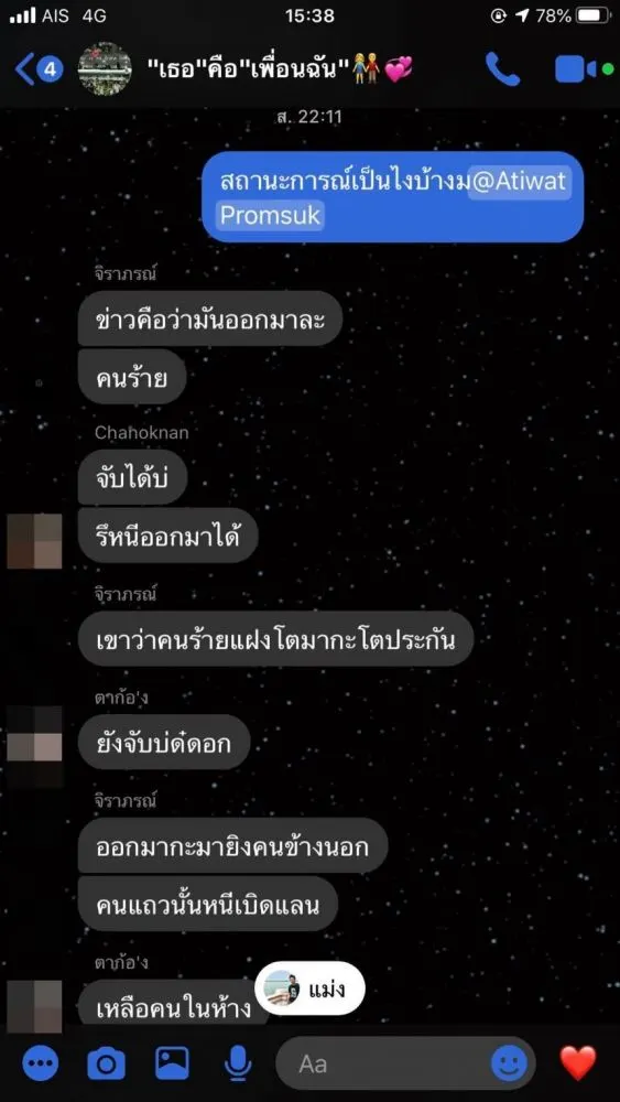 ล่าสุดเพื่อน น้องเดียร์ ได้โพสต์ถึง พร้อมกับเผยแชทของน้องเดียร์ที่คุยกับกรุ๊ปไลน์เพื่อนๆ เล่าสถานการณ์ระหว่างหลบหนี