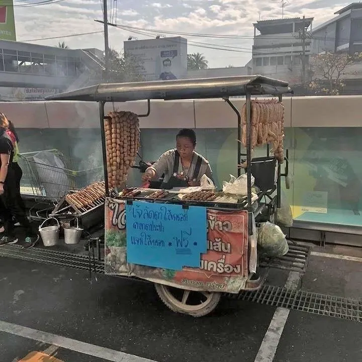 แม่ค้าไส้กรอก ยืนย่างแจกฟรี ให้ จนท.จิตอาสา หน้าเทอร์มินอล 21 โคราช