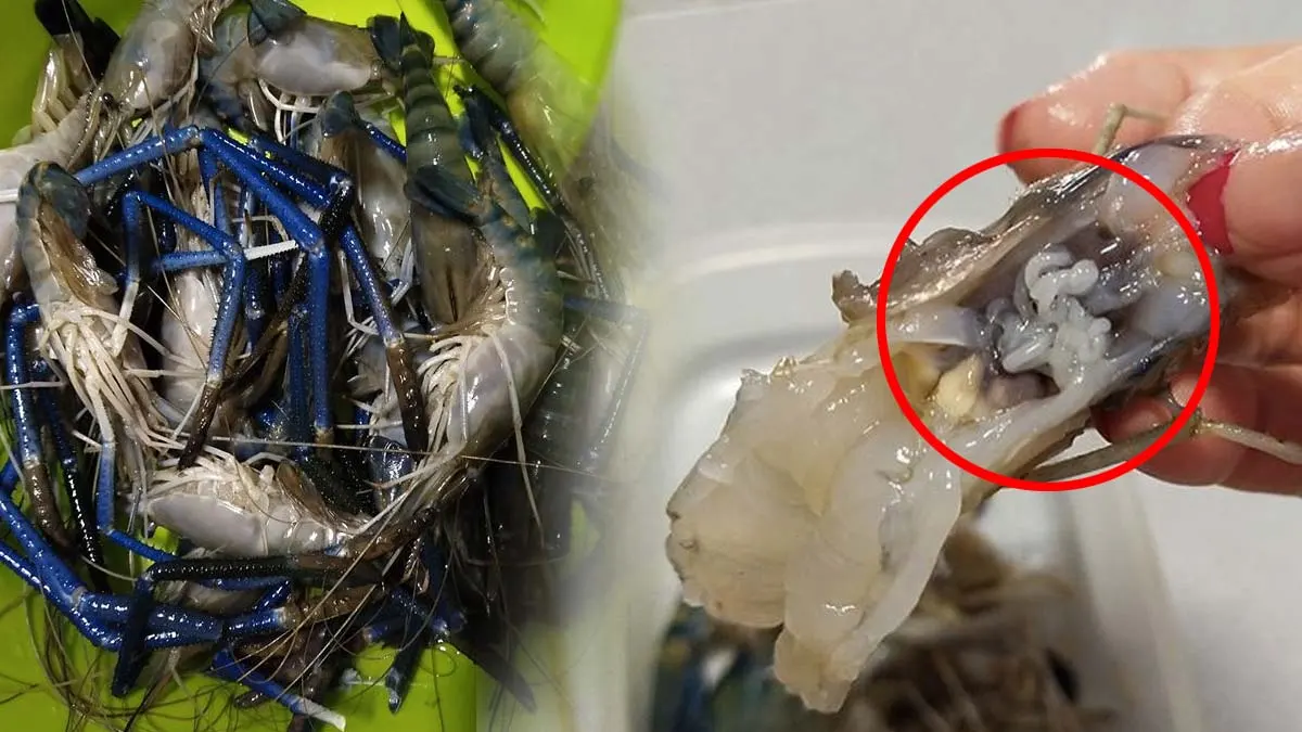 สาวซื้อกุ้งมาจากตลาดนัด เจอเส้นปริศนาสีขาวซ่อนอยู่ด้านใน