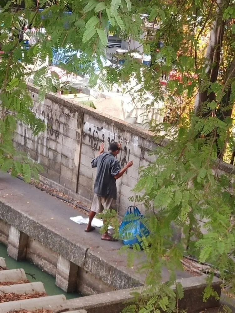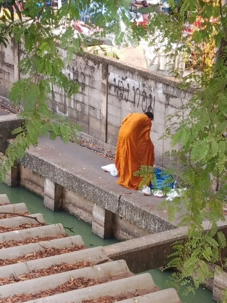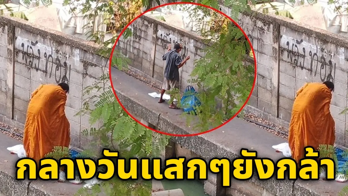 พระสงฆ์ยืนลับๆล่อๆอยู่ข้างกำแพง