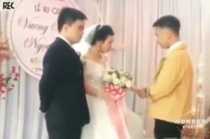 เจ้าบ่าวสุดงง แฟนเก่าเจ้าสาว เดินขึ้นเวทีร่วมอวยพร ก่อนสวมกอดกลางงานแต่ง (มีคลิป)