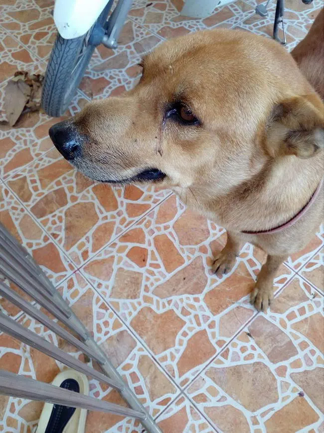 โดยเธอเล่าว่าน้องเคยโดนไก่รุมมาแล้วครั้งหนึ่งเป็นแผลที่ตาพาไปรักษา เพิ่งหายได้ไม่นาน และเมื่อวานไก่มารุมน้องอีกครั้ง วันนี้หนักเลยน้องจมูกบวมมาก น้องวิ่งเล่นอยู่บริเวณบ้านที่เป็นสวนผักเล็กๆ แต่ไก่ชอบมาหากินที่บ้านมาทีฝูงใหญ่ มีวิธีไหนช่วยได้บ้างเพราะน้องเป็นหมาแต่ว่าน้องกลัวไก่มากๆ