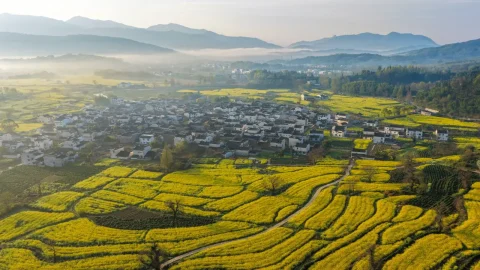 หมู่บ้านชนบทวิวแสนสวยในอันฮุย ผสานบ้านสไตล์ฮุย ทุ่งดอกผักกาดห่มหมอก ในประเทศจีนสวยมากๆเลยเน่อ