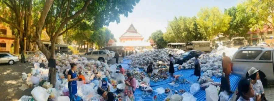 หลวงพ่อ เตรียมนำข้าวสาร-อาหารแห้ง จากงานตักบาตรพระ 10,000 รูปกลางเมืองโคราช แจกจ่ายชาวบ้านเพื่อเป็นทาน
