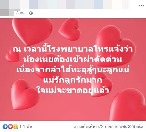 พ่อ-แม่ น้องเนย ใจจะขาด หลังหมอโทรมาบอกอาการกลางดึก