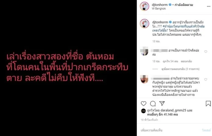 โดย ดีเจต้นหอม ศกุนตลา สงสัยถึงคดีดังกล่าว โดยโพสต์ภาพข้อความลงไอจี "เล่าเรื่องสาวสองที่ชื่อ ต้นหอม ที่โดนคนในพื้นที่ปากเกร็ดกระทืบตาย ละคดีไม่คืบให้ฟังที...." พร้อมแคปชั่นด้วยว่า