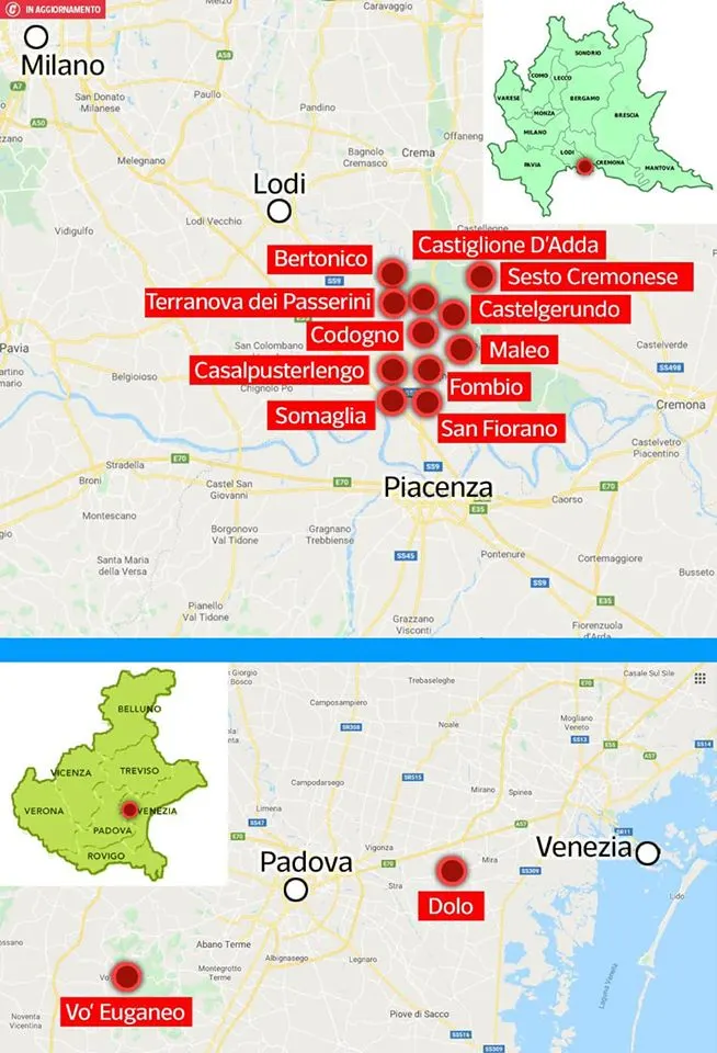 1 กุมภาพันธ์ 2563 ทางการอิตาลีสั่งปิดโรงเรียน ร้านอาหาร และแหล่งชุมชน ใน 10 เมืองของประเทศแล้วหลังจากพบผู้ติดเชื้อโควิด-19 เชื้อโคโรนาไวรัสสายพันธุ์ใหม่ที่มีจุดเริ่มต้นการแพร่ระบาดจากเมืองอู่ฮั่น ประเทศจีน เป็นจำนวนมาก ขณะที่ล่าสุดมีผู้ติดเชื้อเสียชีวิตแล้ว 1 ราย นับเป็นผู้เสียชีวิตรายแรกในยุโรป