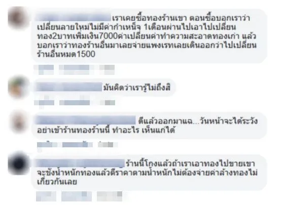 ผมก็เลยโทรไปที่ 191 โทรไปหาคุณตำรวจเพื่อสอบถามข้อมูลคุณตำรวจให้ข้อมูลมาว่าถ้าเราไม่ได้เอาเงินจากร้านทองมาแล้วร้านทองต้องให้ทองคืนพอที่ร้านทองหรือว่าผมโทรไปหาตำรวจ 191 เขาก็เลยเพิ่มให้อีก 2,000 บาทเป็น 23,000 บาท ผมก็เลยตกลงราคานี้พ่อจะจ่ายตังค์ร้านก็เลยบอกว่าจะมีค่าล้างทองอีก 300เงิน เหลืออยู่ 22,700