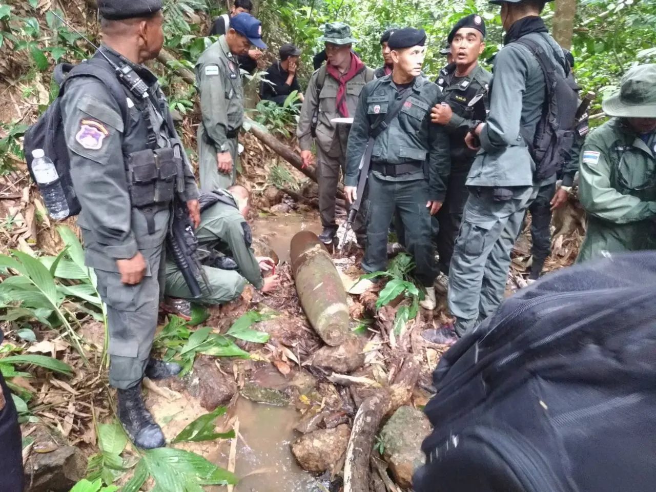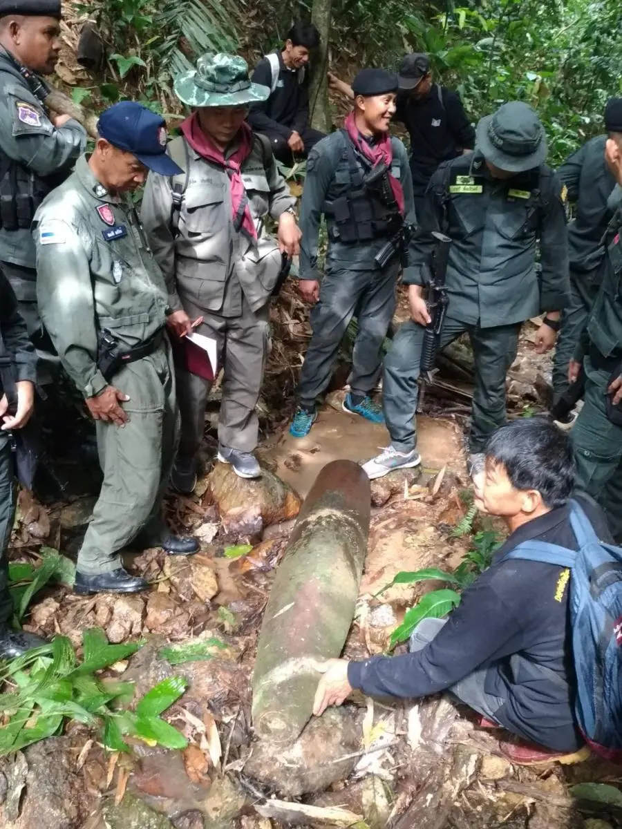 ได้พบว่าเป็นระเบิด ชนิดลูกระเบิดอากาศ แบบ MK-82 ขนาด 500 ปอนด์ ลักษณะระเบิดเป็นลูกด้าน ท้ายชนวนไม่มีแล้ว จำนวน 1 ลูก อยู่ในร่องน้ำระหว่างหุบเขาป่าดิบชื้น พื้นที่ห่างไกลไม่มีผู้คนเข้าถึงได้ง่าย ชาวบ้านผู้นำทางทราบว่าเคยพบเห็นระเบิดดังกล่าว มาประมาณ 20 ปีแล้ว สันนิษฐานว่า เป็นลูกระเบิดทิ้งทางอากาศ เมื่อครั้งสู้รบกับโจรจีนคอมมิวนิสต์มาลายา