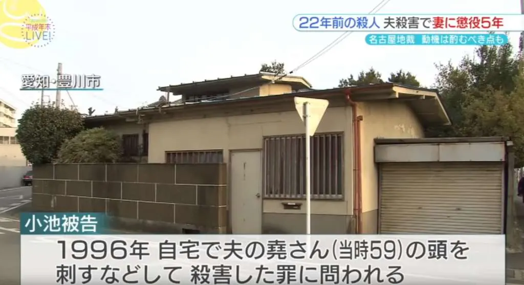 โคอิเคะแทงที่หัวและคอของสามีด้วยมีดทำครัว หลักจากทนถูกทุบตีและทรมานมาเป็นเวลานาน หลังจากสามีเสียชีวิต เธอได้ซ่อนศพของสามีใว้ในบ้าน ถึงแม้เพื่อนบ้านและคนรู้จักจะสงสัยต่อการหายตัวไปของสามีเจ้าอารมณ์ของเธอ แต่ก็ไม่มีใครใส่ใจมากนัก ศพของเค้าถูกหมกอยู่ในบ้านนานนับสิบๆปี