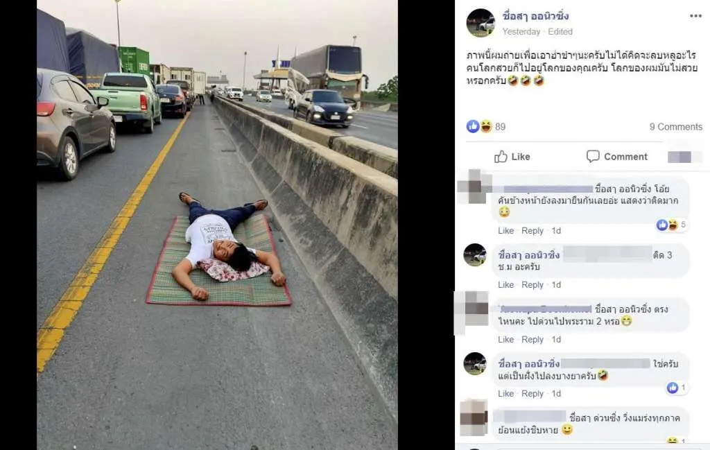 สำหรับภาพดังกล่าวนั้น ไม่ได้เกิดอุบัติเหตุเรื่องเศร้าเเห่งความสูญเสียแต่อย่างใด โดยทางผู้ใช้เฟซบุ๊ค ชื่อสๅ ออนิวซิ่ง เผยความจริงว่า ภาพนี้ผมถ่ายเพื่อนเอาฮา ขำๆนะครับไม่ได้คิดจะลบหลู่อะไร คนโลกสวยก็ไปอยู่โลกของคุณครับ โลกของผมมันไม่สวยหรอกครับ