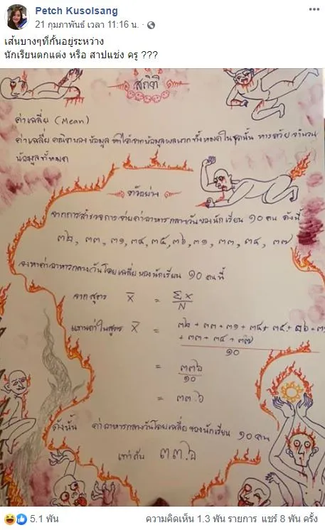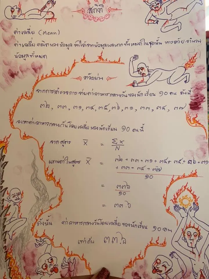 ผลงานของนักเรียนคนนี้เรียกได้ว่าตกแต่งอย่างไม่เหมือนใครเพราะวาดรูปในนรกตกแต่งผลงาน ครูตรวจไปก็กระอักกระอ่วนไปเลยทีเดียว
