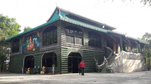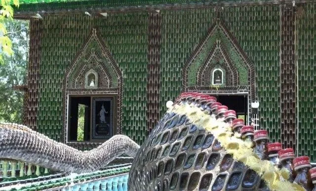 หนึ่งเดียวในโลก วัดล้านขวด สร้างจากขวดแก้วนับล้าน ตระการตาทั้งวัด