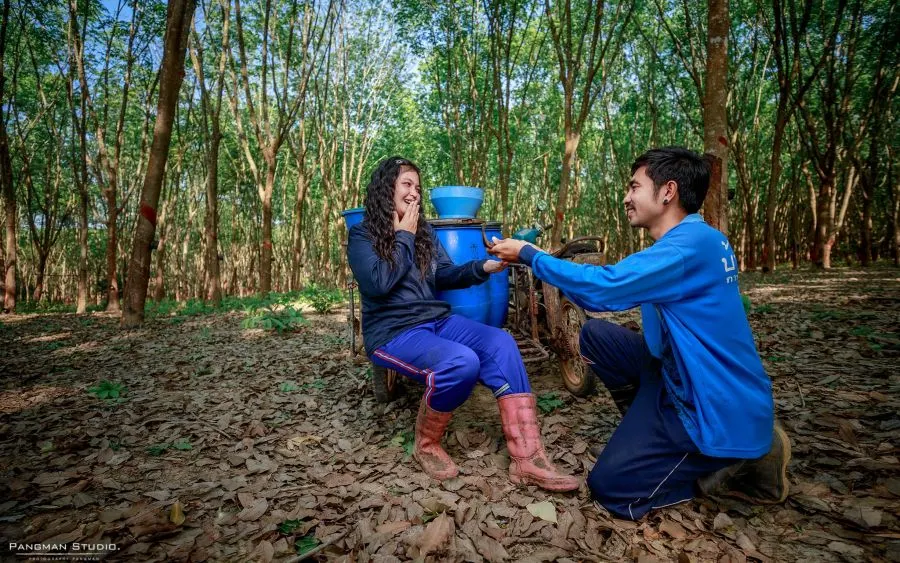 พรีเวดดิ้งเรียบง่ายแต่งดงามของ คู่รักหนุ่ม-สาวชาวสวนยาง