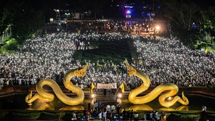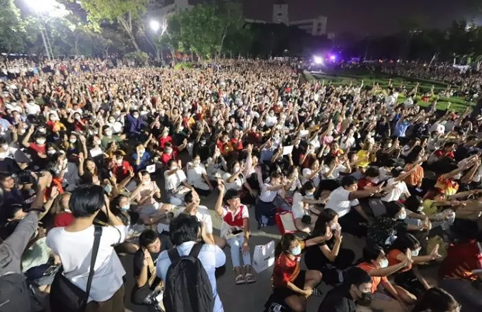 พรึ่บ เต็มตา นศ.ธรรมศาสตร์ ทะลุ 2 พันคน ตะโกนลั่น “ประยุทธ์ออกไป” ที่ลานพญานาค!
