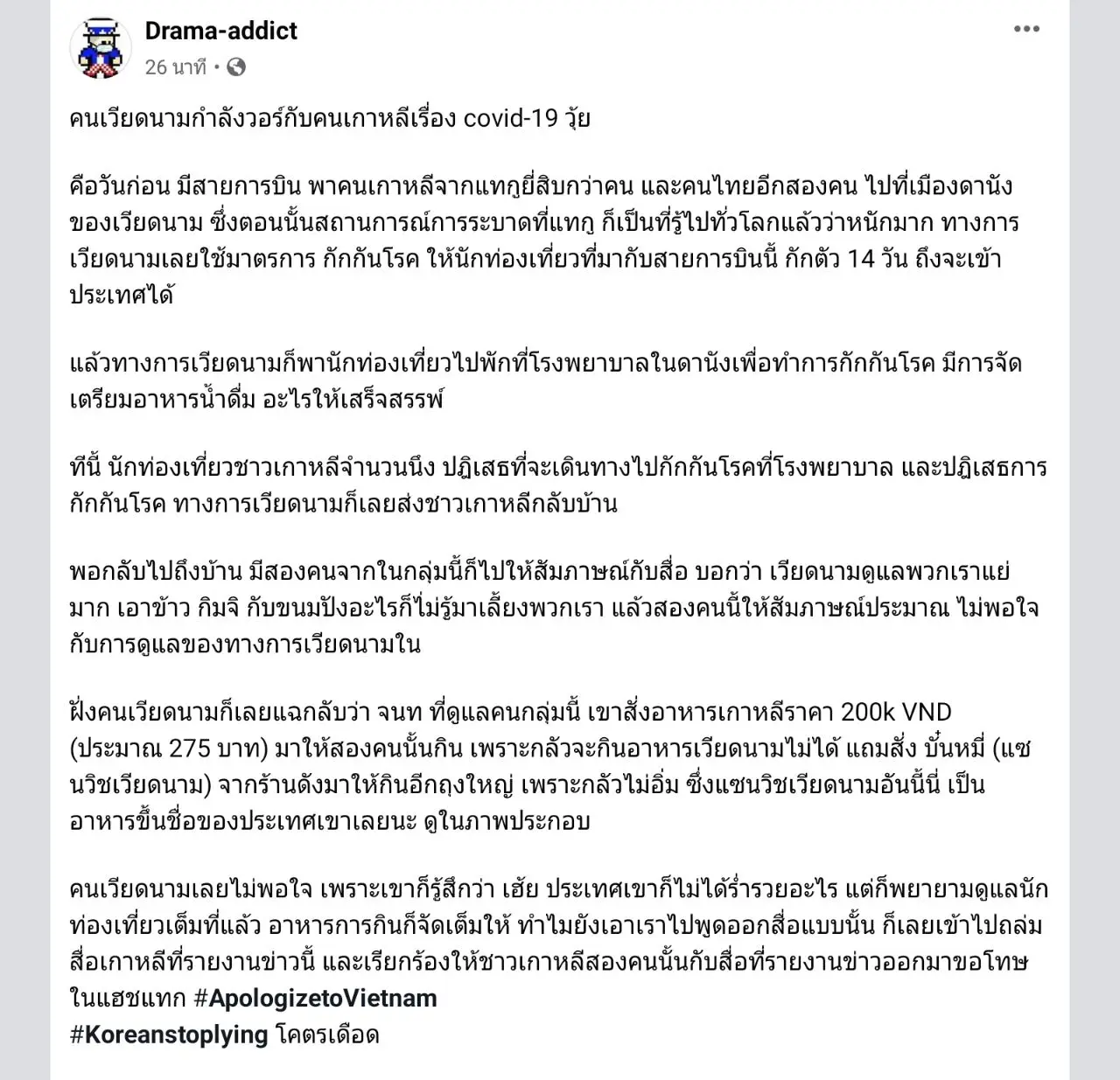 เวียดนามเดือด! หลังกักกันไวรัสคนเกาหลีในประเทศ จนท.ดูแล อาหาร อย่างดี แต่คนเกาหลีดันให้ข่าวแย่สุดๆ