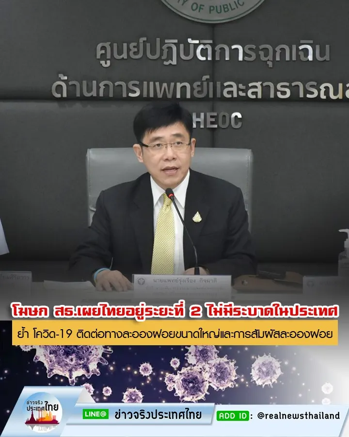 โฆษก สธ.เผยสถานการณ์โรคโควิด-19 ของไทยอยู่ระยะที่ 2 ไม่มีระบาดในประเทศ ย้ำ โควิด-19 ติดต่อทางละอองฝอยขนาดใหญ่และการสัมผัสละอองฝอย