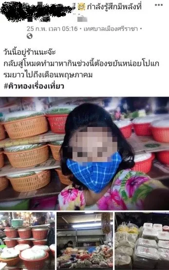 แฉ ลูกทัวร์นั่งเครื่องลำเดียวกับ ปู่-ย่า ติดเชื้อ โควิด 19 เป็นหญิงอาชีพแม่ค้าขายอาหารในตลาดแห่งหนึ่งในพื้นที่ศรีราชา จ.ชลบุรี เผยกลับมาไม่เข้าสู่กระบวนการกักกันโรค 14 วัน แต่เปิดร้านขายขนมจีนในทันที