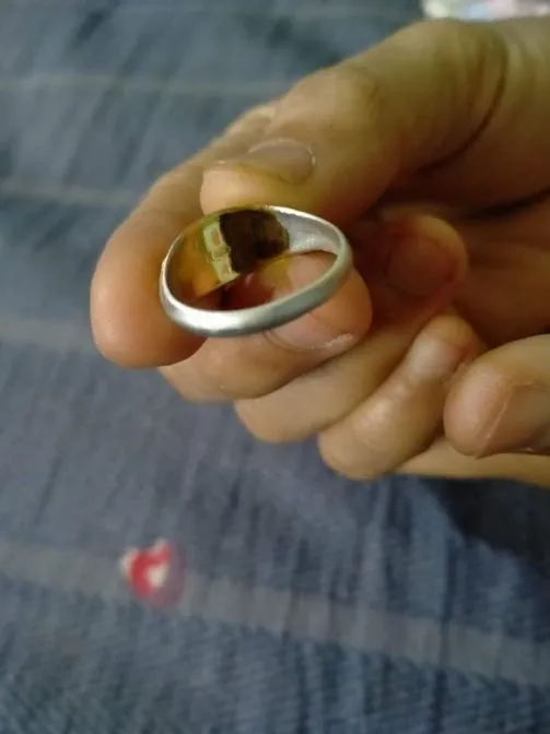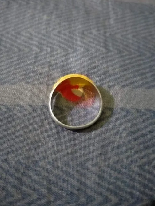 โดยในภาพจะเห็นได้ว่า แหวนทองที่หนุ่มคนนี้ซื้อนั้น มีจุดด่างเปลี่ยนจากสีทองกลายเป็นสีขาว ซึ่งสร้างความกังวลใจให้กับเข้าของเป็นอย่างมาก