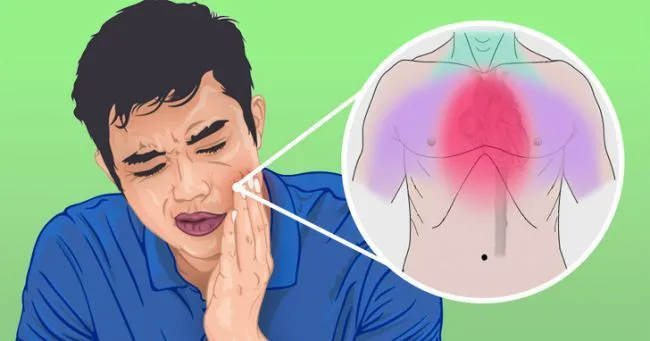 ความเจ็บปวดของหัวใจบางครั้งสามารถส่งต่อไปยังส่วนต่างๆ ของร่างกายได้ เช่น ไหล่ซ้ายและแขนซ้ายมักจะเจ็บไปด้วย และยังอาจเกิดความเจ็บปวดที่ฟันล่างและกราม นี่อาจเป็นสัญญาณของโรคหลอดเลือดหัวใจตีบซึ่งอาจเป็นการเตือนของอาการหัวใจวาย ดังนั้นหากคุณมีสุขภาพฟันที่ดีแต่คุณกลับรู้สึกปวดฟัน(และมีอาการอื่นๆที่เกี่ยวข้อง) คุณอาจต้องไปพบผู้เชี่ยวชาญโรคหัวใจ