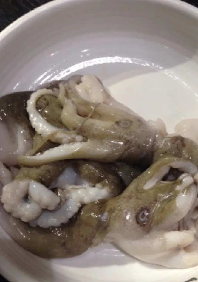 หลังจากค้นหาข้อมูลแล้วพบว่ามันไม่ใช่หมึกบลูริงแต่เป็นหมึกอิคคิวที่กินได้ครับหมึกอิคคิวจะเป็นหมึกทะเลขนาดเล็กอีกชนิดหนึ่งเอามากินได้ความแตกต่างสำคัญคือมันจะมีลาบวงแหวนนั่นแค่วงเดียวบนลำตัวขณะที่หมึกบลูริงจะมีลายวงแหวนสีน้ำเงินทั่วทั้งลำตัวลามไปจนถึงหนวดของมันเลย