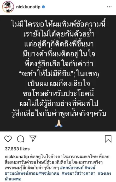 แต่ก็ไม่รู้ว่าเรื่องนี้จะเกี่ยวกับที่ดาราหนุ่ม นิก คุณาทิป เพิ่งจะออกขอโทษไอจีเมื่อวานรึป่าวน้า