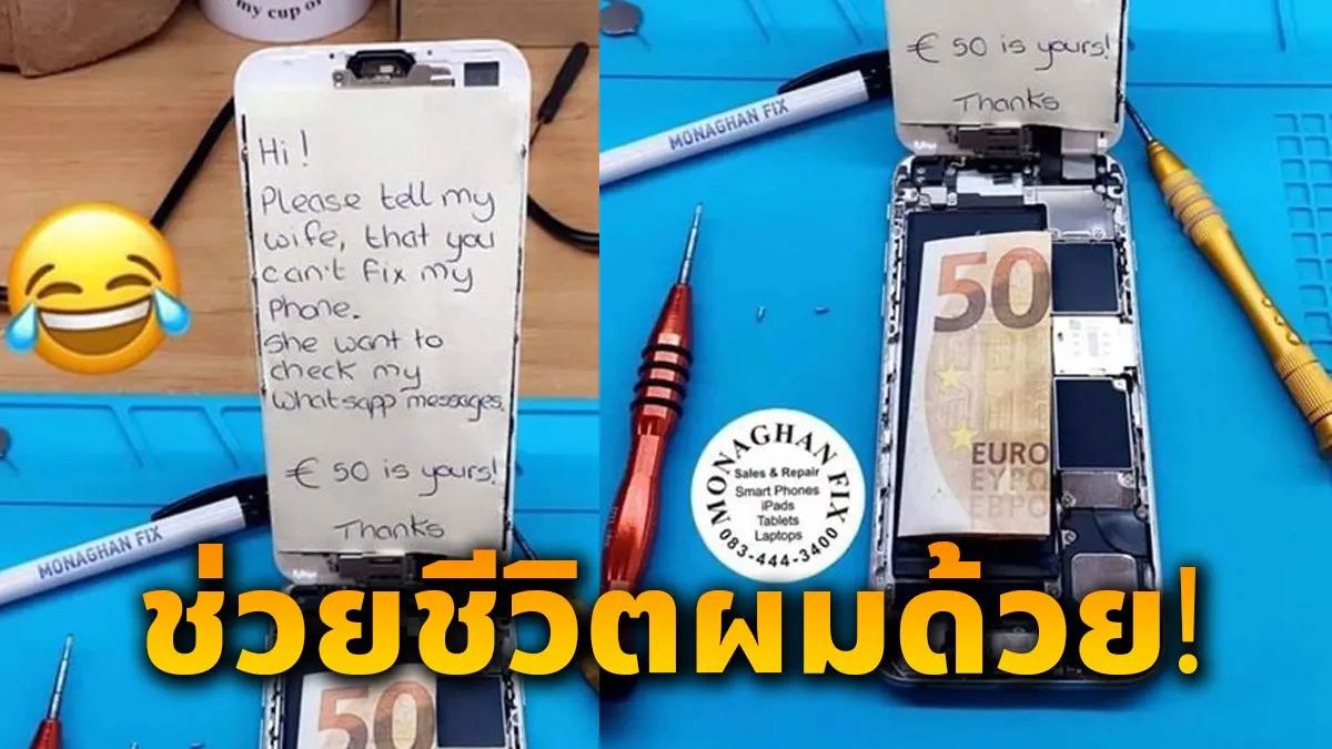 เจ้าของร้านซ่อมมือถือสะดุ้งเฮือก เจอจดหมายร้องขอชีวิตจากลูกค้า พร้อมทิปจำนวน 2 พันบาท