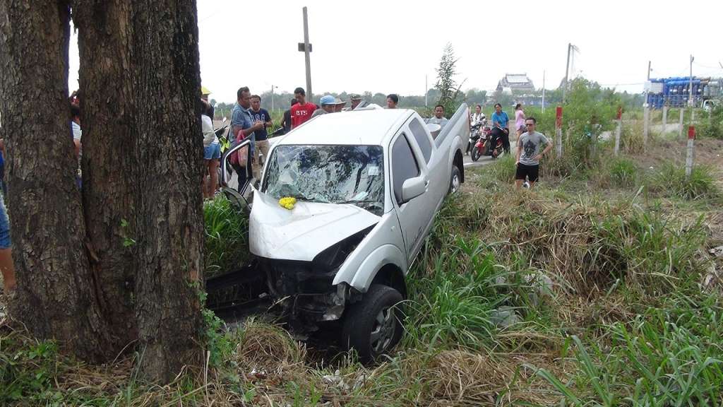 (ขาเข้าอำเภอบ้านบึง) หมู่ที่ 1 ต.หนองไผ่แก้ว อ.บ้านบึง จ.ชลบุรี เป็นรถกระบะนิสสัน สีเงิน ทะเบียน บธ 9341 สุรินทร์ ผู้ตายชื่อ “นางศุก จุฬา” อายุ 64 ปี ติดอยู่ในซากรถ เจ้าหน้าที่พยาม ปั๊มหัวใจช่วยชีวิตแล้ว แต่ไม่สำเร็จ เสียชีวิตในที่เกิดเหตุ ส่วนผู้บาดเจ็บ 5 ราย ถูกนำตัวส่ง รพ.บ้านบึง รายชื่อ 1.นายสุขี แจงใจ อายุ 45 ปี (คนขับ) 2.นางนิตย์ แจงใจ อายุ 42 ปี 3.นางสาวเรน ซะมา อายุ 63 ปี 4.ด.ช.นิธินันท์ จุฬา อายุ 5 ปี 5.ด.ญ.วาเลนไทน์ แจงใจ อายุ 10 ปี