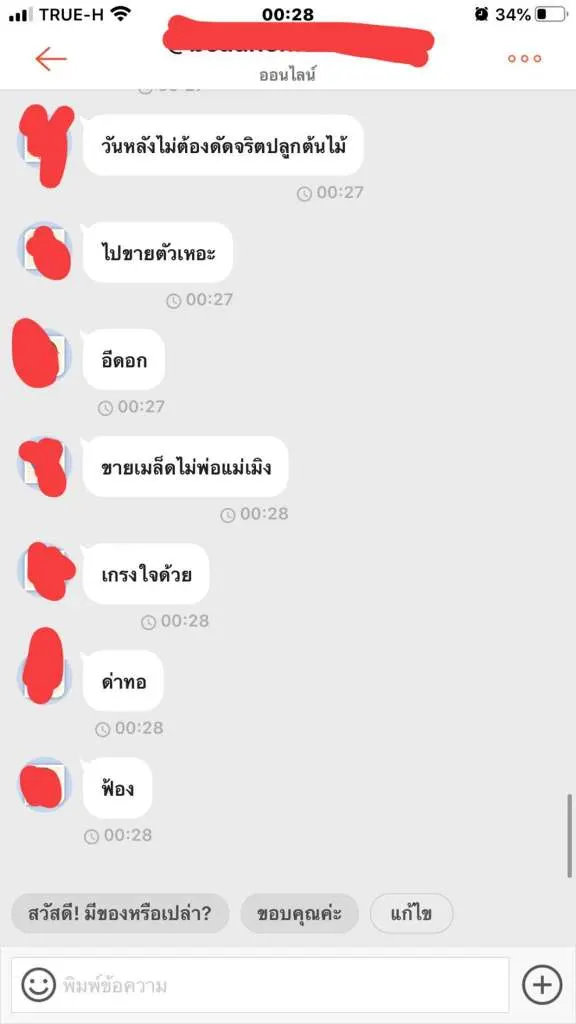 โดยผู้โพสต์คนดังกล่าว ระบุข้อความว่า ” คือโมโหมากบอกเลยยย!! เราไปถามเค้าดีๆ ถ้าบอกว่าไม่รับผิดชอบเราก็ไม่ว่าอะไร นี่เริ่มแปลกๆตรงบอกว่า ว่าง ละ เหมือนกวน คือแบบเหมือนโรคจิต เราไปทำอะไรให้อะ ด่าเราขนาดนี้ คือแฟนเราด่าเค้าหลังจากคำว่ากระจอก เพราะโมโห อยู่ๆมาด่าเฉยเลย เป็นแม่ค้าคือคุยแบบนี้ได้ยังไง เราจะทำยังไงกับคนแบบนี้ได้บ้าง คือเค้าขู่จะฟ้องเราด้วย งงมาก เมล็ดเราลืมให้แฟนถ่ายไว้ เพราะเค้าเอาไปแช่น้ำแล้วตัวรามันไม่เห็น เลยยังไม่ทันได้บอกอะไร โดนด่ามาเลย พิมพ์ไปก็เหมือนคุยกับคนจิตไม่ปกติ คือโกรธจนตัวสั่น!! เราหยุดพิมพ์ไปยังมีพิมพ์ด่าเราตามหลังมาอีก ด่าแรง เกิดมายังไม่เคยโดยขนาดนี้ ซื้อของกับคนอื่นยังไม่เคยมีปัญหาเลย”