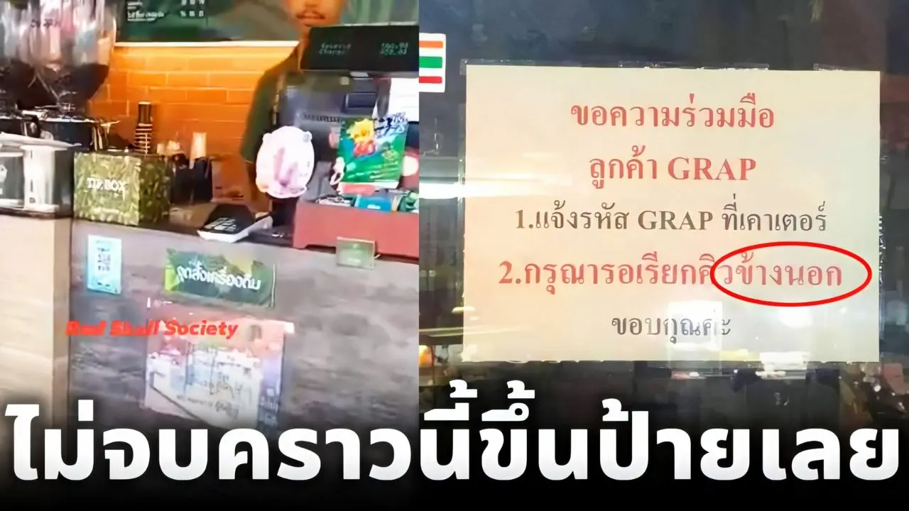 ไม่จบ! ร้านกาแฟดังติดประกาศให้แกร็บ ออกไปรอนอกร้าน แม้คลิปฉาวว่อน