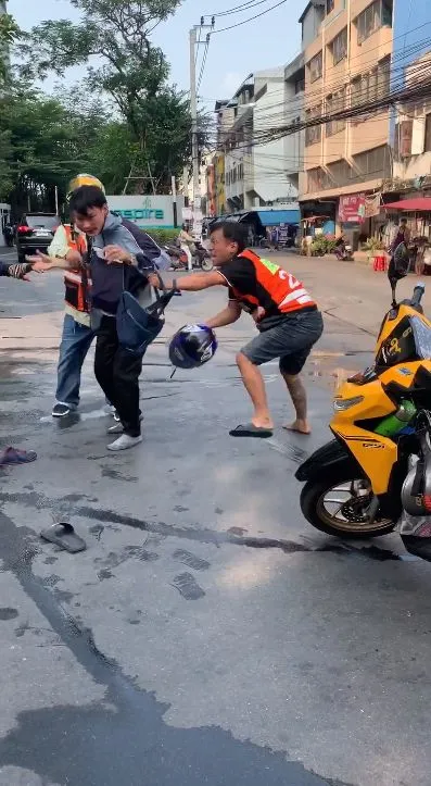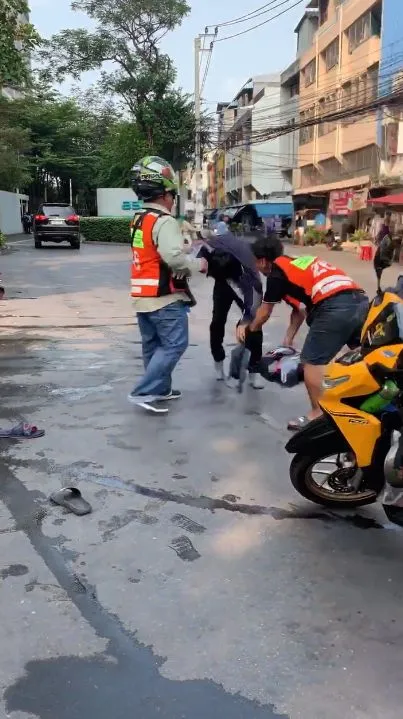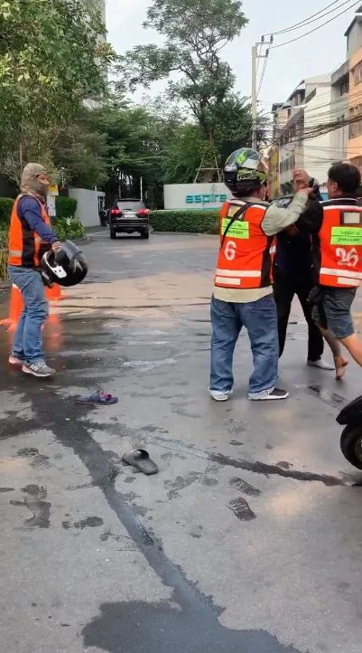 สุดเถื่อน! วินเจ้าถิ่นรุมตีแกร็บไบค์อ่วม ลูกค้าสาวหวิดโดนลูกหลง (มีคลิป)