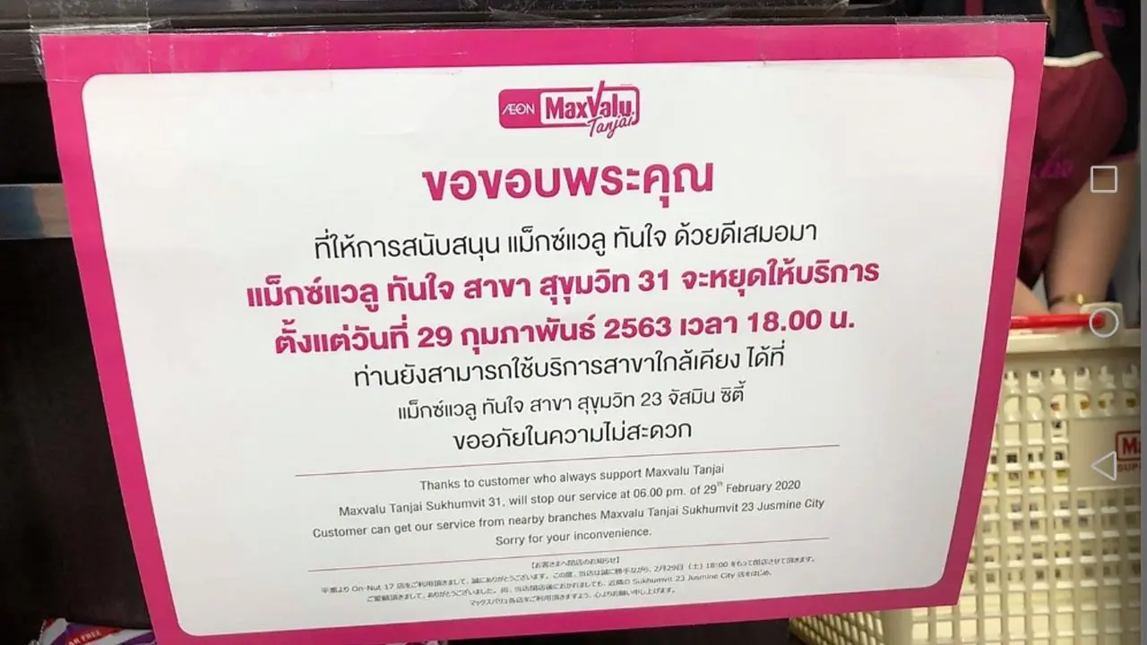 ล่าสุด “ประชาชาติธุรกิจ” ได้สอบถามไปยังผู้บริหาร บริษัท อิออน (ไทยแลนด์) จำกัด ได้รับคำชี้แจงว่า การปิดสาขาประมาณ 20 สาขาดังกล่าว เป็นการปืดสาขาที่ไม่ทำกำไร จากปกติที่แม็กซ์ แวลู ทันใจ มีอยู่ประมาณกว่า 40 สาขา