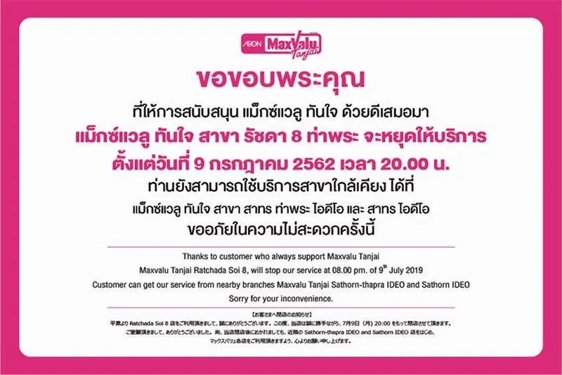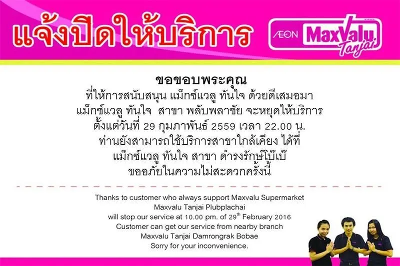 2 มีนาคม 2563 บนโลกออนไลน์ได้มีการแชร์ภาพป้ายประกาศแจ้งปิดสาขาของ แม็กแวลู ทันใจ มินิซูเปอร์มาร์เก็ต โดยการปิดดังกล่าวจะเริ่มในวันที่ 1 มีนาคม ที่ผ่านมา เกี่ยวกับเรื่องดังกล่าว ได้รับการเปิดเผยจาก เจ้าหน้าที่ บริษัท อิออน ไทยแลนด์ จำกัด ผู้บริหารร้านซูเปอร์มาร์เก็ต แม็กซ์แวลู และแม็กซ์แวลู ทันใจ ว่า