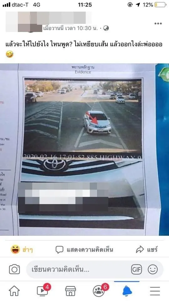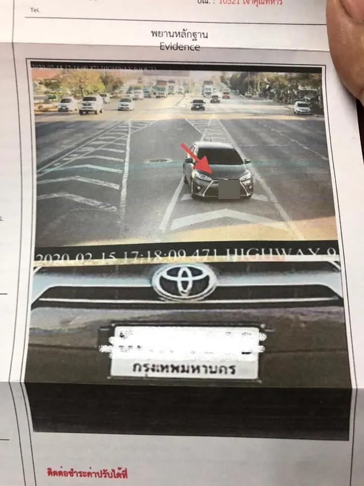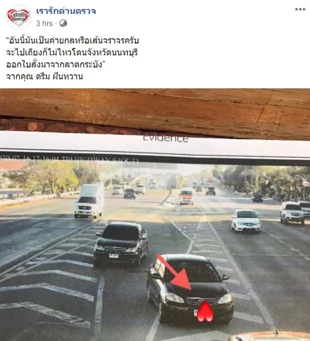 โดยภาพจากกล้องจราจร ออกมาเป็นใบสั่งดังกล่าวโพสต์ผ่านเพจ เรารักด่านตรวจ
