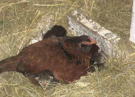 โดยวันหนึ่งเขาได้ไปเดินสำรวจในฟาร์มเพื่อเช็คว่า ไก่ที่เขาเลี้ยงอยู่เนี่ยใกล้จะวางไข่แล้วหรือยัง แต่จู่ๆ ระหว่างเดินสำรวจบังเอิญหันไปเห็นไก่ตัวหนึ่งกำลังนอนกกตัวอะไรบางอย่าง แถมมีหัวโผล่ออกมาข้างตัวไก่ด้วย งานนี้ชายหนุ่มก็ผงะตกใจกลัว แต่ด้วยความที่สงสัยและข้องใจว่ามันคือตัวอะไรกันแน่ จึงตัดสินใจเดินเข้าไปดูใกล้ๆ ถึงได้รู้ว่ามันคือลูกแมวนี่เอง ที่มาแอบอยู่ในท้องของแม่ไก่