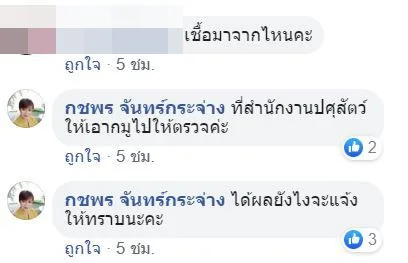 ทั้งนี้เจ้าของโพสต์แจ้งว่าได้ติดต่อทางปศุสัตว์แล้วเพื่อนำเนื้อหมูนี้ส่งไปตรวจและหากได้ผลออกมาแล้วจะรายงานให้ทราบอีกครั้ง