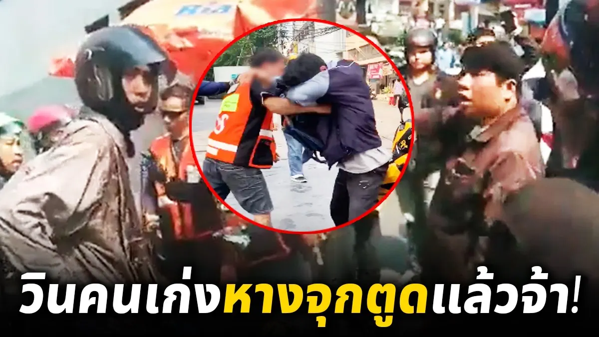 กลุ่มคนขับแกร็บนับ 10 รวมตัวบุกวินกระทืบเพื่อนร่วมอาชีพ ล่าสุดพี่วินคนเก่งหนีหางจุกตูด