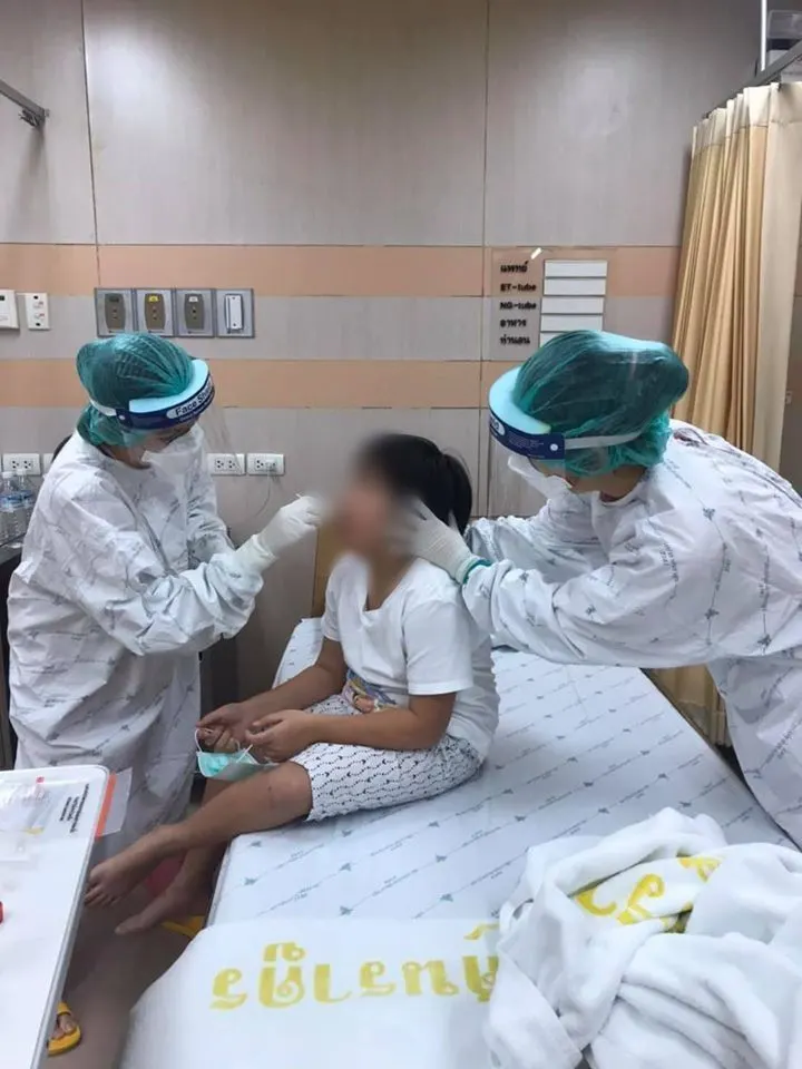 ยุ้ยทยอย เล่าและส่งภาพการตรวจมาทางไลน์ เริ่มจากซักประวัติ เอกซเรย์ปอดเพื่อดูอาการปอดบวมกับระบบทางเดินหายใจ ขูดกระพุ้งแก้ม เก็บสารคัดหลั่งทางจมูกสองอย่างนี้เพื่อบ่งชี้ว่าของเหลวในร่างกายมีเชื้อไวรัส เป็นพาหะของโรคหรือไม่ และ เจอเลือดอีก2หลอดใหญ่ไปเพื่อเพาะเชื้อหาไวรัส ไตเติ้ลให้ควรร่วมมือเป็นอย่างดี