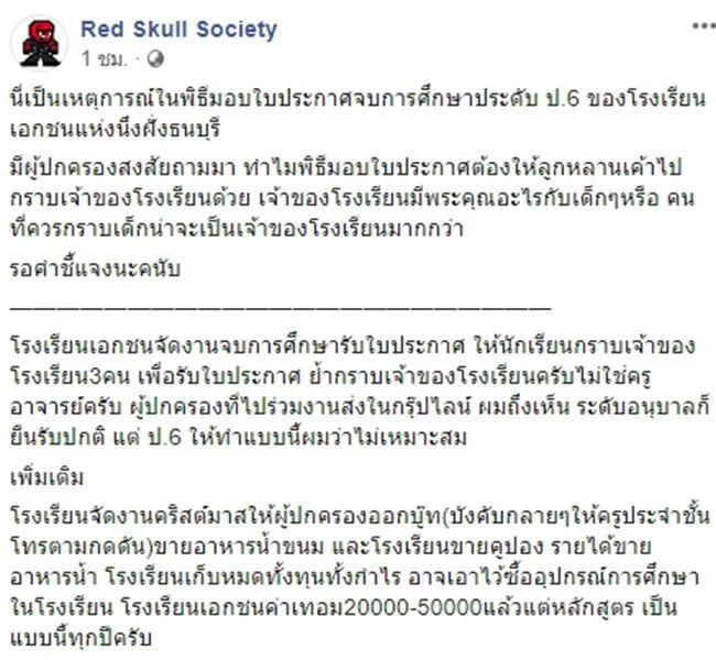 "นี่เป็นเหตุการณ์ในพิธีมอบใบประกาศจบการศึกษาประดับ ป.6 ของโรงเรียนเอกชนแห่งนึงฝั่งธนบุรี