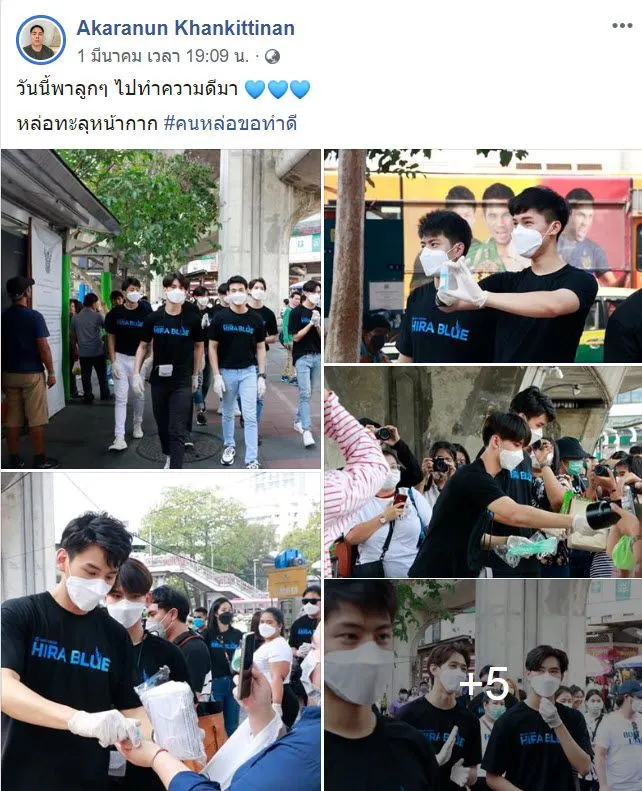 โดยก่อนหน้านี้เขายังได้พาแก๊งคนหล่อไปทำความดีด้วยการแจกหน้ากากอนามัยที่อนุสาวรีย์ชัยสมรภูมิอีกด้วย