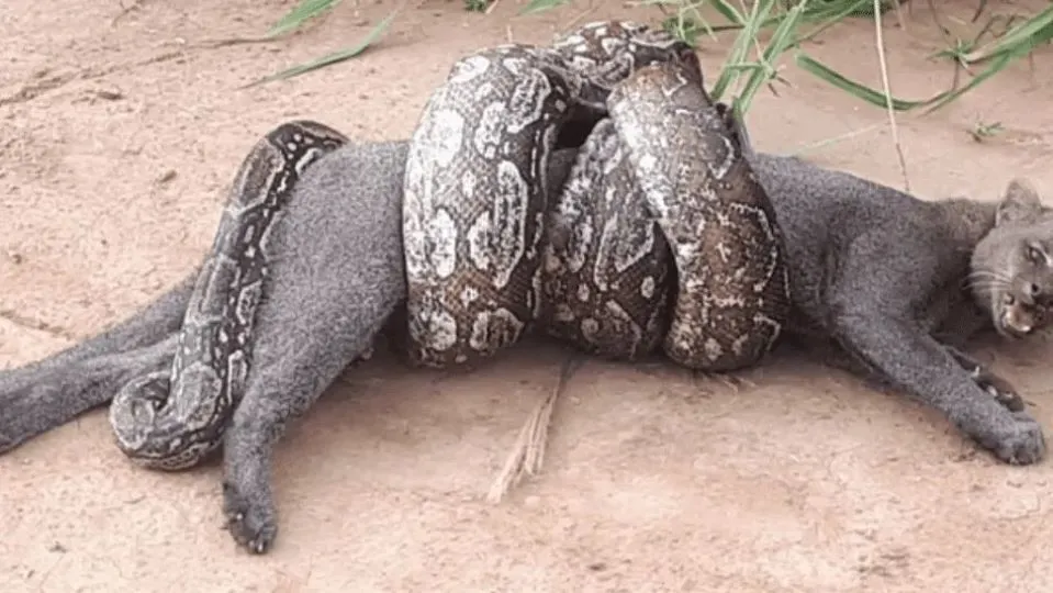 2 มี.ค. 63 ในโลกออนไลน์ลาตินอเมริกา ได้มีการแชร์คลิปวิดีโอไวรัล บันทึกเหตุการณ์ขณะแมวป่าถูกงูรัด ซึ่งมันร้องครวญครางขอความช่วยเหลือ ขณะที่พยายามจะหลบหนีจากลำตัวงูที่รัดแน่นขึ้นเรื่อย ๆ จนมันนอนอ่อนแรงใกล้สิ้นลม แต่เคราะห์ดีที่มีคนผ่านมาเห็นเข้า เจ้าเหมียวใหญ่จึงรอดจากการเป็นอาหารของงู