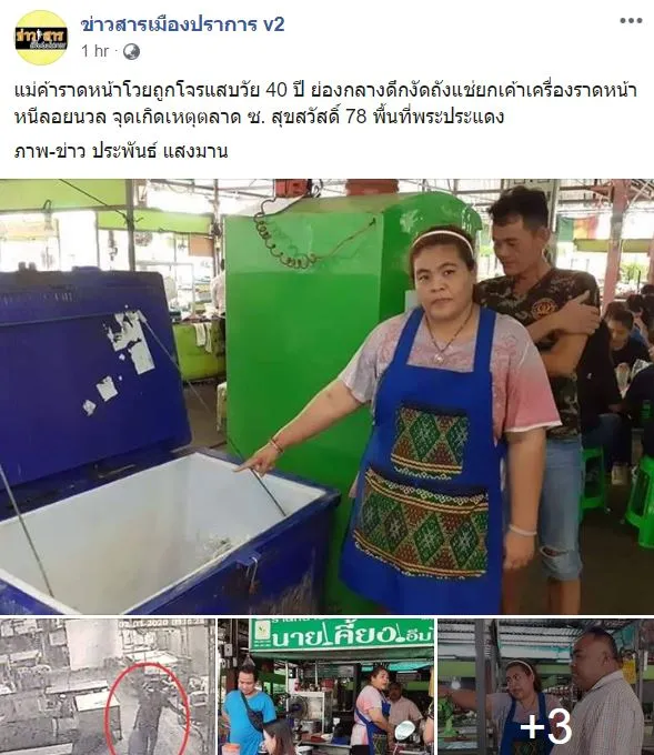 "แม่ค้าราดหน้าโวยถูกโจรแสบวัย 40 ปี ย่องกลางดึกงัดถังแช่ยกเค้าเครื่องราดหน้าหนีลอยนวล จุดเกิดเหตุตลาด ซ. สุขสวัสดิ์ 78 พื้นที่พระประแดง"