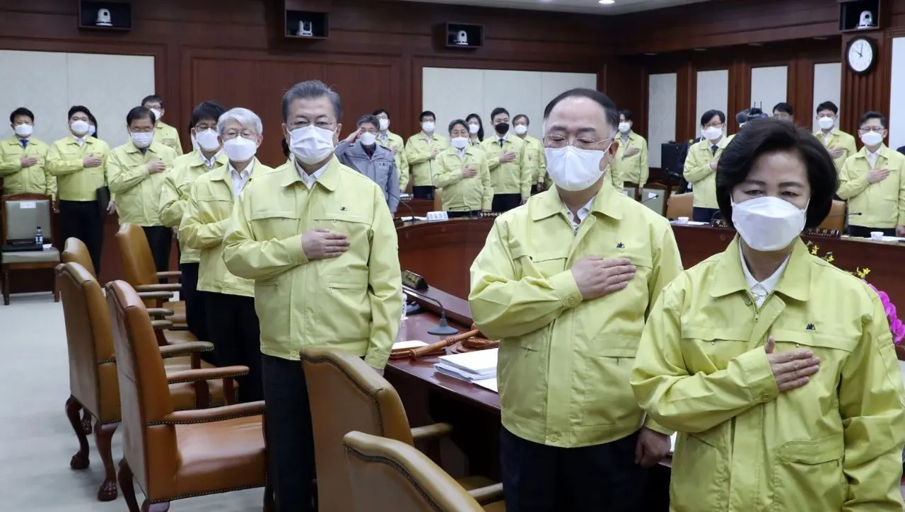 มุนแจอิน ประธานาธิบดีเกาหลีใต้ กล่าวว่า ตอนนี้เกาหลีใต้อยู่ในสภาวะสงครามกับเชื้อไวรัสโควิด-19 หลังจากรัฐบาลประกาศมาตรการการป้องกันขั้นสูงสุด เพื่อป้องกันการระบาดของเชื้อไวรัสฯ ทั้งนี้รัฐบาลเกาหลีใต้ได้อนุมัติงบประมาณกว่า 30 ล้านล้านวอน หรือประมาณ 775,000 ล้านบาท เป็นงบประมาณที่ใช้ในการควบคุมการแพร่ระบาดของโควิด-19
