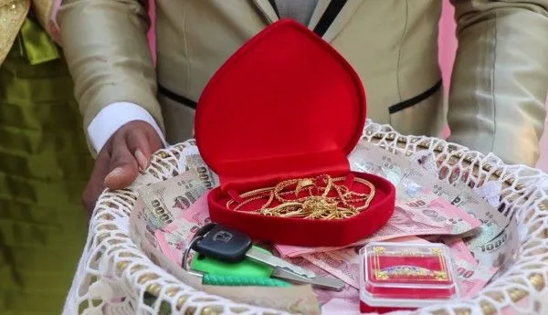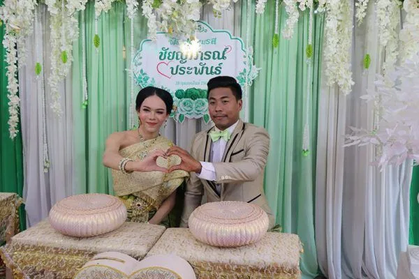 โดยนายประพันธ์ หรือ ท๊อป มีสะอาด อายุ 28 ปี เจ้าบ่าว ได้นำสินสอดเป็นเงินสดจำนวน 20,000 บาท สร้อยคอทองคำ หนัก 5 บาท และรถยนต์เก๋ง อีก 1 คัน มาสู่ขอเจ้าสาว นายชัยญาภรณ์ หรือ คาราเมล รอดประยูร อายุ 23 ปี เพื่อนฝูงที่มาร่วมงานอวยพรบ่าวสาวกันอย่างคึกคัก
