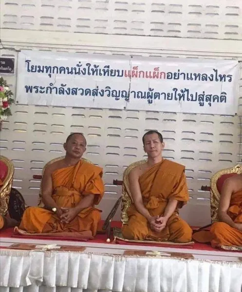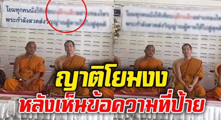 โดยป้ายดังกล่าวเขียนว่า โยมทุกคนนั่งให้เ...ยบแผ็กแผ็กอย่าแหลงไหร ซึ่งหลังจากภาพดังกล่าวถูกโพสต์ออกไปสร้างความสงสัยให้ชาวโซเชียลที่ไม่เข้าใจเป็นอย่างมาก