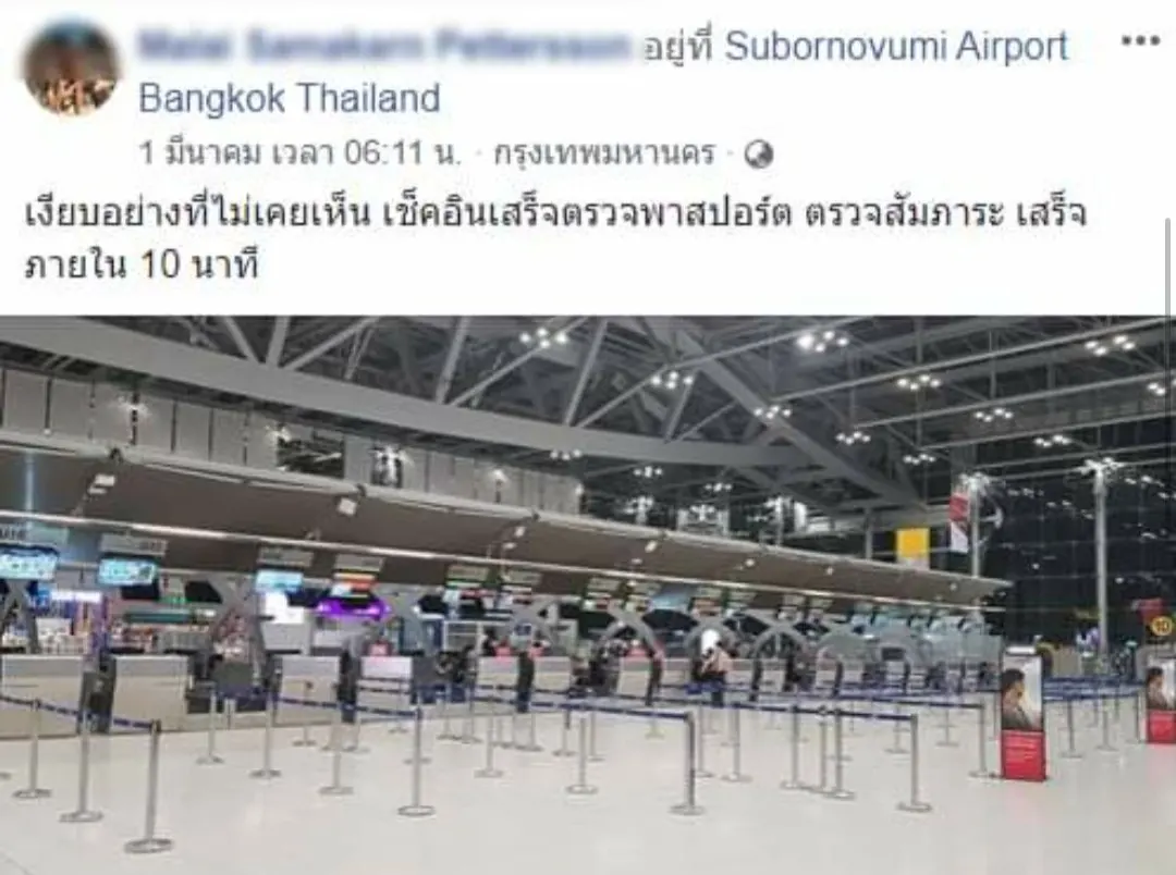 สุวรรณภูมิ เงียบเหงา ถึงค่อนข้างร้าง เช็คอินไม่ถึง 10 นาที