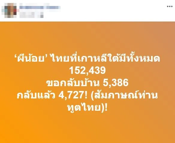 เปิดตัวเลขสุดสะพรึง จำนวน ผีน้อยไทย ที่มีทั้งหมดในประเทศ เกาหลีใต้