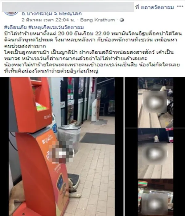 น้องหมาไม่ทำร้ายใครนะคะเพราะคนเข้าออกเซเว่นเป็นสิบ น้องไม่กัดใครเลย ที่เห็นคือน้องโดนทำร้ายด้วยอิฐก้อนใหญ่"