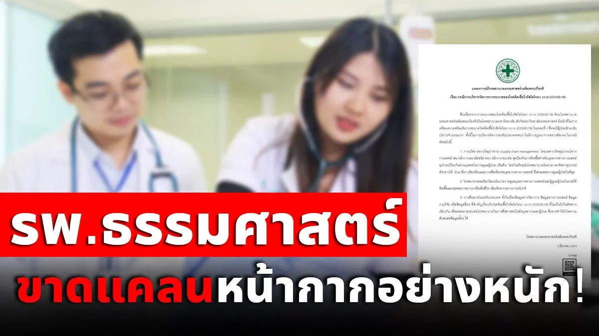 โรงพยาบาลธรรมศาสตร์ร่อนแถลงการณ์ขาดแคลนหน้ากากอนามัย-เครื่องมือป้องกันไวรัสอย่างหนัก